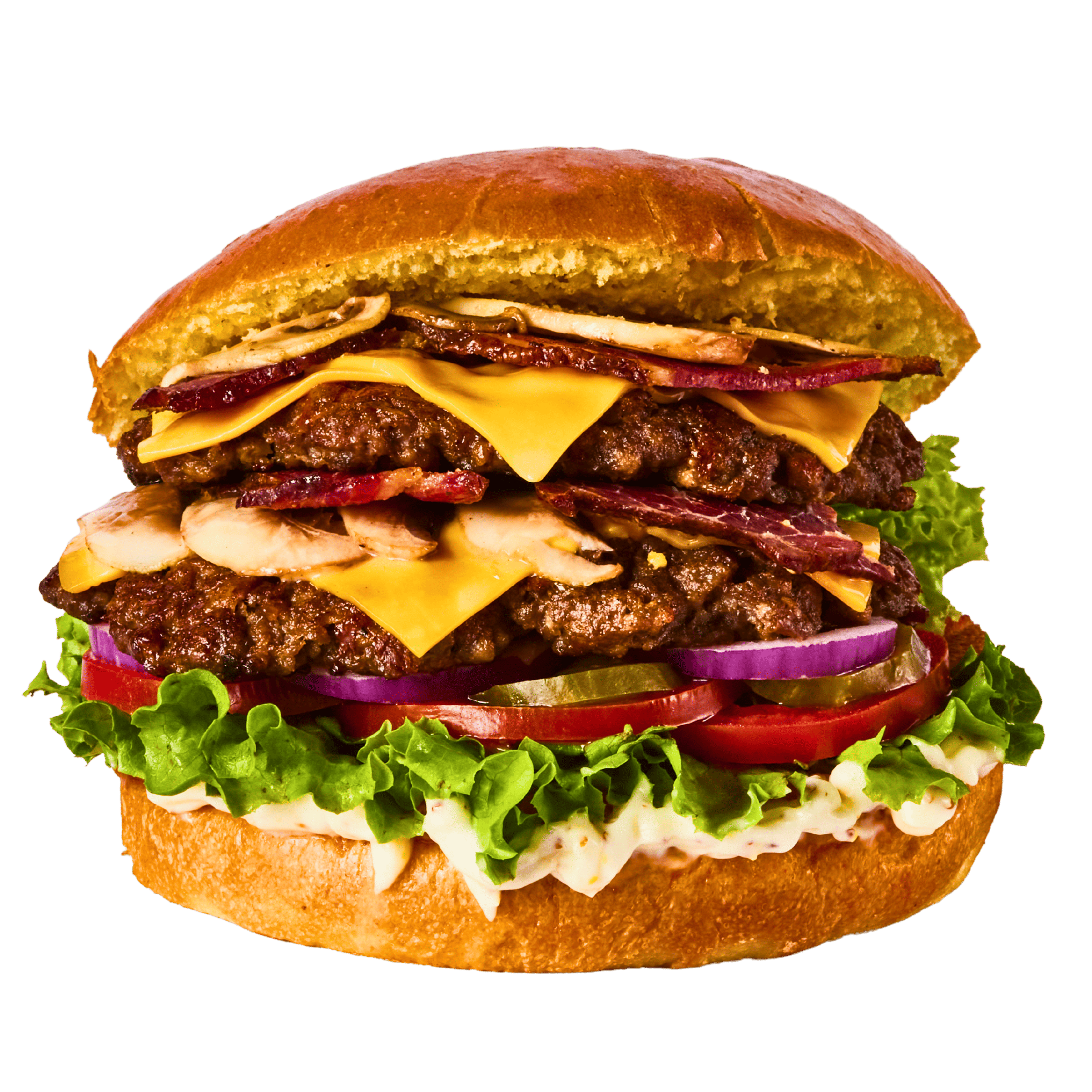 Smashed burger with american cheese,bacon,mushroom slices, and Dijon mayo dressing.